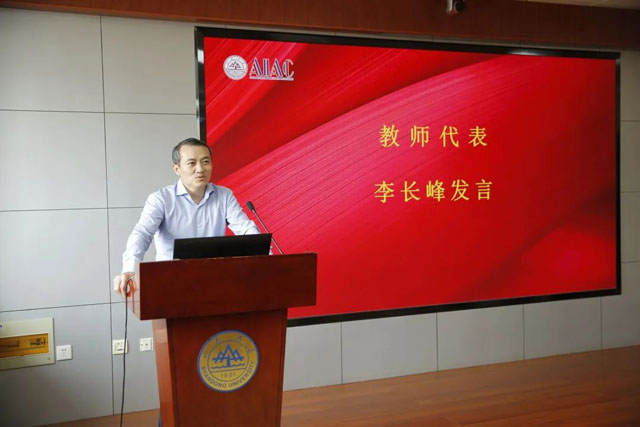 教师代表李长峰回顾了过去一年中和同学们相处的点点滴滴,并鼓励同学们勇于拥抱未来。