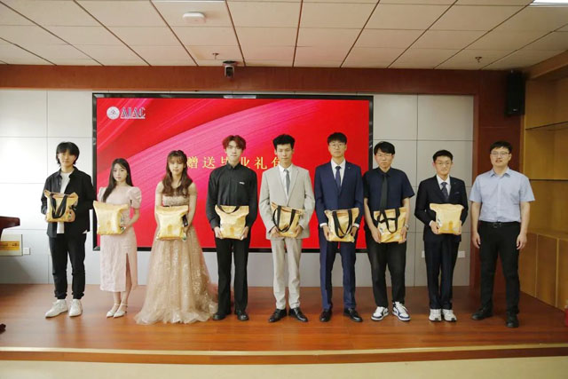 党委副书记李良杰为毕业生代表赠送毕业礼包
