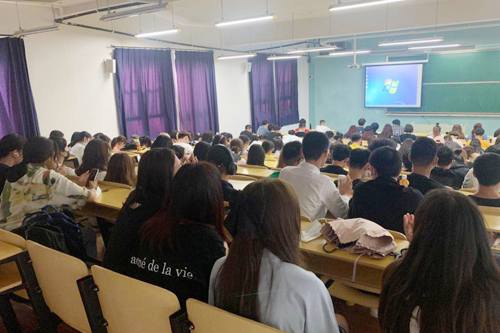 魏薇老师从专业课考核评估、考勤、考风考纪三个方面向新生介绍学校规章制度。辅导员张鉴老师宣读新生手册向新生补充了规章制度。
