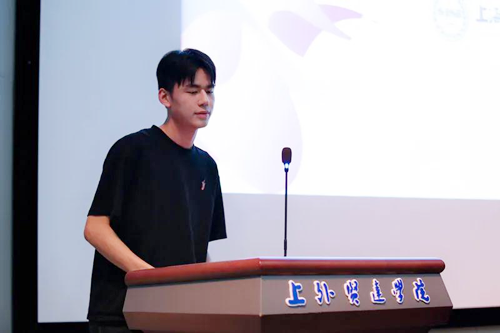 国际交流学院2019级卢奥同学作为老生代表发言,他表示大学四年有足够的自主支配时间,学弟学妹们要明确学习目标、培养思考能力。在小事中,积蓄成长,顽强拼搏,四年无悔,不负韶华!