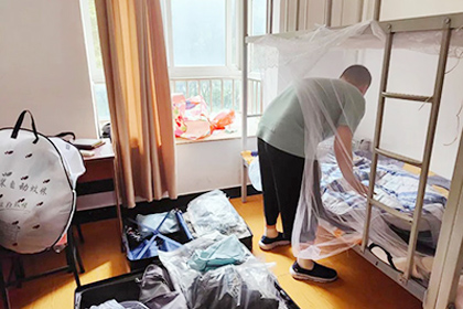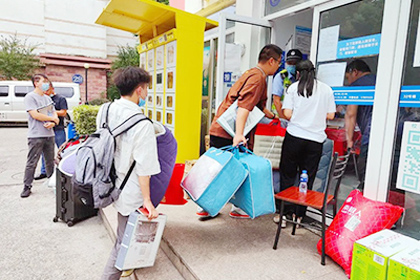完成一系列的报到手续后,学生们前往上外住宿区,办理入住手续。为了严格遵守疫情防控的要求,学校规定家长不得进入校门和宿舍。没有家长的打点,学生们是否能够照顾好自己,一直是家长们的心头大患。但是当看到学生们自己提着行李箱、步伐坚定的踏过宿舍楼大门时,才意识到,原来曾经饭来张口、衣来伸手的少年,已经成长为独立自主、披荆斩棘的大人了。