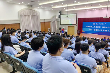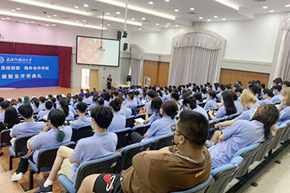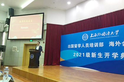 下午的开学典礼由出国留学人员培训部及海外合作学院张毅副院长主持,汪小玲院长、教师代表Romain、学工办丁敏主任依次上台发言,汪院长为新生们上了精彩的第*课,并对同学们提出了祝福及期望,成为一名大气、包容、自信、厚重的上外人、中国人!