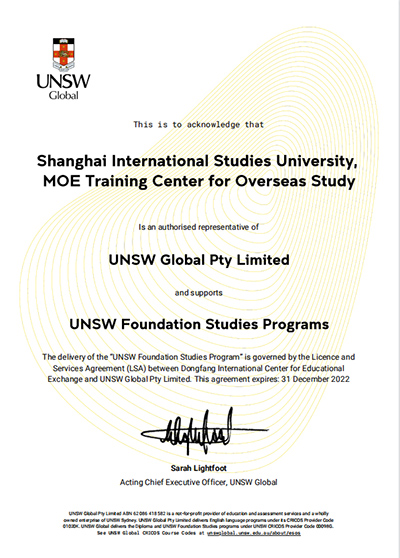 澳大利亚新南威尔士大学预科班(University of New South Wales Foundation Year,简称UNSW预科)是新南威尔士大学开发并独自拥有的项目和品牌,获得澳大利亚所有大学的认可。2005年,该项目由国家留学基金委东方国际教育交流中心、新南威尔士大学、上海外国语大学、澳大利亚教育国际开发署共同签署,并首先在上海外国语大学出国留学人员培训部启动一期招生。