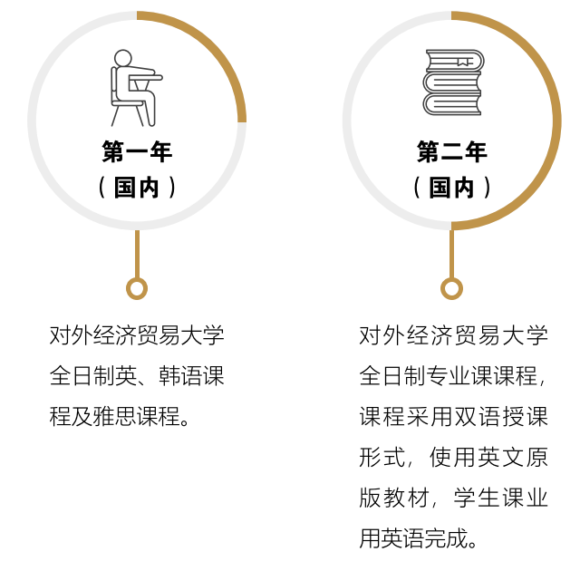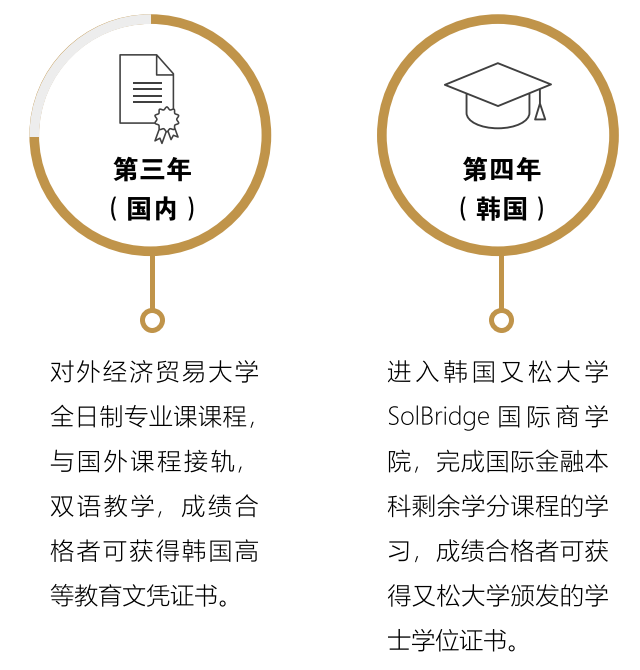 学生通过在对外经济贸易大学完成一年课程学习根据出勤、考试情况,将到韩国*流优质大学进行本科、研究生的学习深造,修满所有学分并完成论文后即可获得海外大学颁发的毕业证与学位证,并可申请博士学位相关课程。