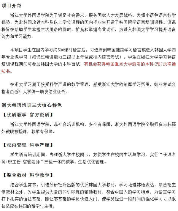 具有国际视野、具有未来发展潜质和优良素养的复合型外语人才;且十分注重对外交流与合作,依托学院自身及浙江大学优良的办学传统和丰富的教学资源,积极地为国内高中生、大学生赴国外知名高校攻读学士、硕士学位搭建了高起点的平台。同时学院还与英国,加拿大,澳大利亚、香港、新加坡等国家的知名大学开展了不同形式的合作。多年来,学院凭借*流的教学环境,*流的师资力量及*流的教学质量为学生提供口碑好、质量高的教育培训和留学途径。