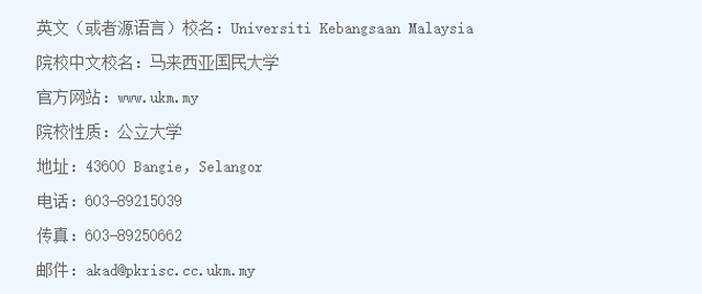 学校拥有主校区、工程学院、医学院三个校区,共28个学院,以及26个研究中心。专门从事教育、工程技术、计算机、药学、和国际政治等研究。有12个专业位列QS世界大学学科专业排名前100,本科生和研究生共3万多人,占地面积15,000亩,提供500多个专业领域的硕士和博士学位课程,学位证书可获得留学服务中心认证。(www.usm.edu.my)